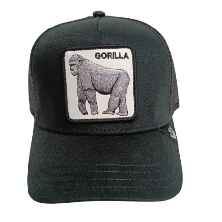Gorra de estilo beisbol, ajuste posterior. Visera ligeramente curvada. frontal y visera de tela. Parche frontal cosido fondo blanco y bordado de gorila.