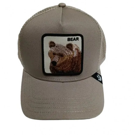 Gorra de estilo beisbol, ajuste posterior. Visera ligeramente curvada. Tejido adecuado para verano, la visera en el mismo color. Parche frontal cosido fondo blanco y oso.