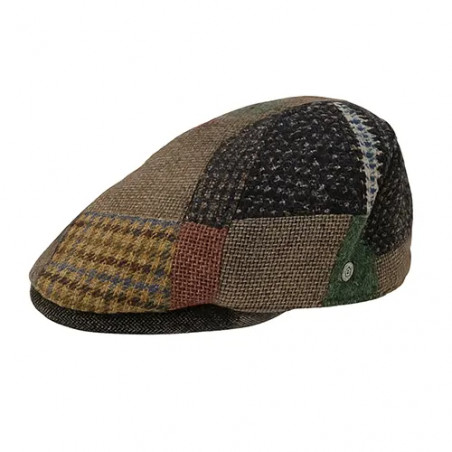 Gorra estilo broker o roda de Beirets en paño de lana entramados diversos, construcción patchwork. Interior forrado con viscosa.