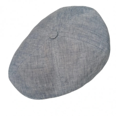 Gorra de tejido fresco de lino 100% estilo Oxford formato amplio o newsboy en tonos: azul y beige fabricada en España.